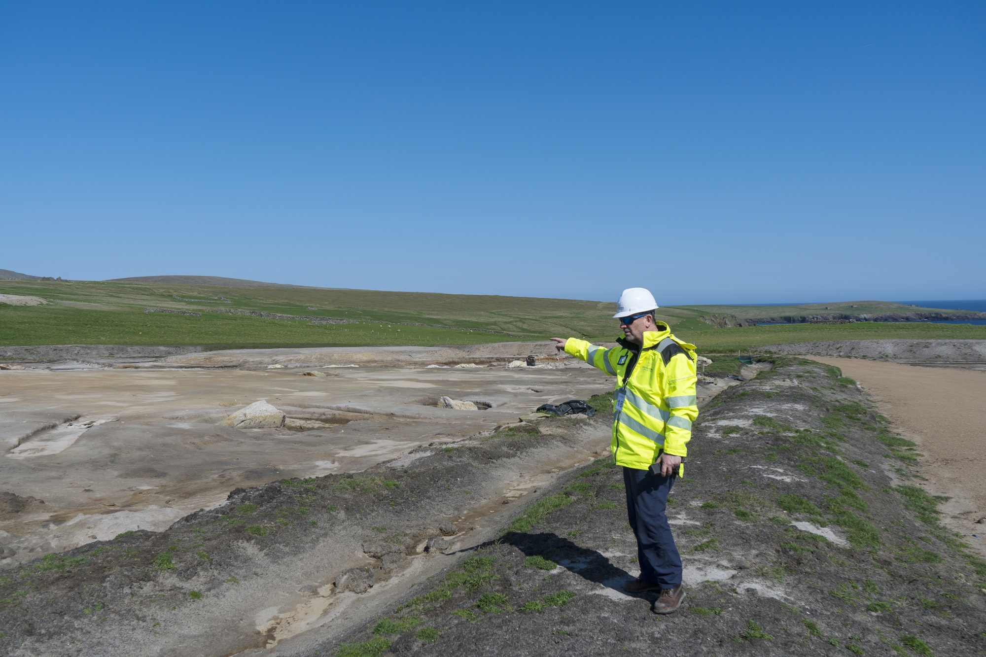 SaxaVord 副首席执行官 Scott Hammond 正在查看据信是在 SaxaVord 发射场发现的青铜时代仪式火葬墓地。摄影师:Lorna Mackay/Bloomberg现在太空港正忙着准备迎接英国太空部长于5月29日举行剪彩仪式。RFA 火箭的第一阶段已经安装在一个发射台上,在容纳员工和客户的度假小屋的窗户中隐约可见。它必须分段运往 SaxaVord:首先穿过德国,穿越英吉利海峡,然后驶往阿伯丁货运渡轮,最后抵达设德兰群岛。