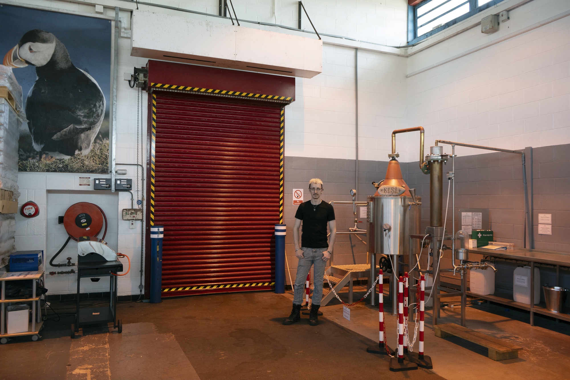 制作助理Luke Williamson在SaxaVord内部酿酒厂。摄影师:Lorna Mackay/Bloomberg