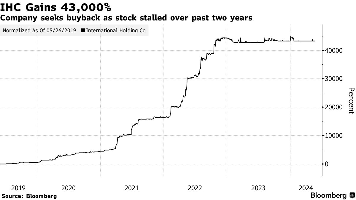 由阿布扎比最有权势的王室成员主持的庞大企业集团International Holding Co.已经计划了其50亿迪拉姆(14亿美元)的股票回购计划,以恢复其股价,因为其股票涨幅达到了43000%。