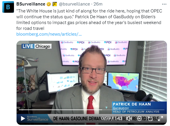 “我们开始看到美国人加满油箱,” De Haan在阵亡将士纪念日周末前说道,“但我不认为汽油需求会达到创纪录水平。”