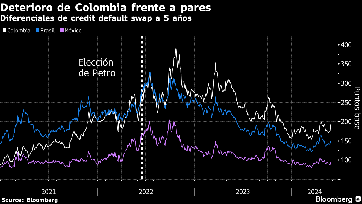 摄影师:David Paul Morris/Bloomberg哥伦比亚总统古斯塔沃·佩特罗提出,如果国会拒绝增加1,760亿美元的债务上限,可能会暂停偿还债务。哥伦比亚很可能不会违约,但总统愿意提出这一建议明显增加了国家风险。