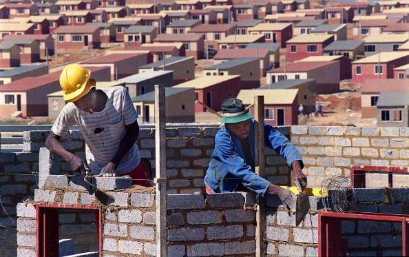 1999年,约翰内斯堡亚历山德拉镇一个新的低成本住房项目工地上的建筑工人。摄影师:Odd Andersen 晚间简报将于5月28日星期二恢复。