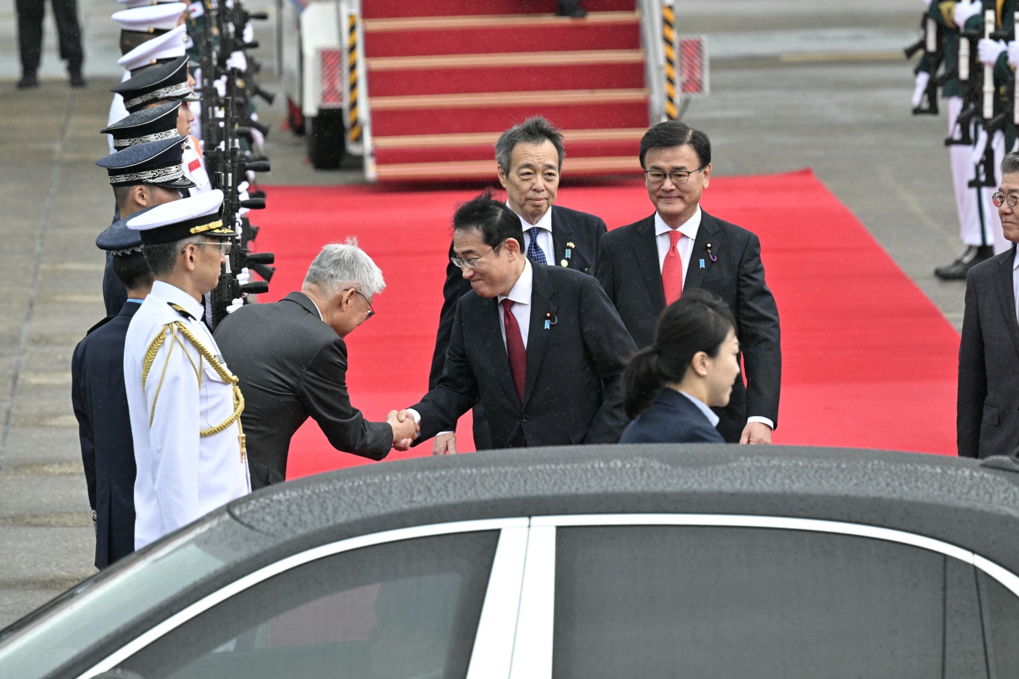 菲米奥·岸田5月26日抵达首尔城南空军基地。摄影师:安东尼·华莱士/法新社/盖蒂图片社阅读更多: 中国在台湾周围举行一年中最大规模的军事演习