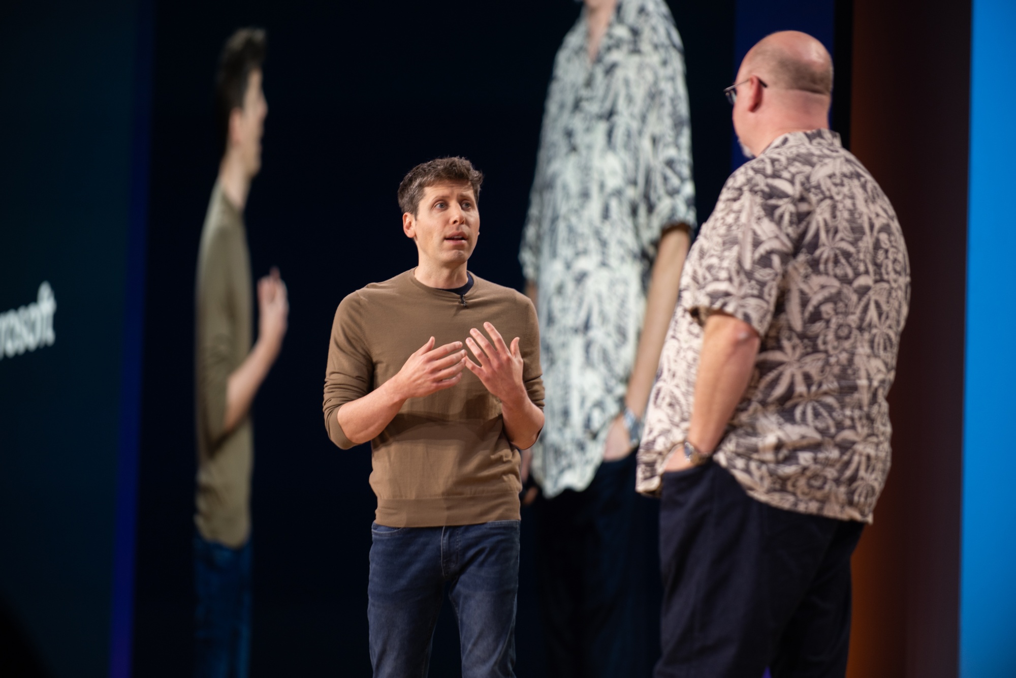 OpenAI首席执行官Sam Altman(左)和微软AI执行副总裁兼首席技术官Kevin Scott。摄影师:Chona Kasinger/Bloomberg另一方面,OpenAI也存在风险。Altman在人工智能领域日益引起争议,甚至在上周与Scarlett Johansson发生争执之前。OpenAI的公司结构也很脆弱。Altman去年曾短暂被免去首席执行官职务,给员工和其主要支持者微软带来危机。