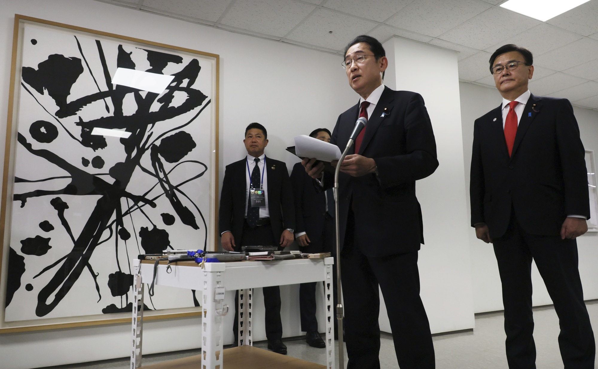 岸田文雄在5月26日与李强和尹锡悦在首尔会面后对记者发表讲话。来源:读卖新闻社/AP照片阅读更多: 朝鲜通知将于6月4日前发射卫星