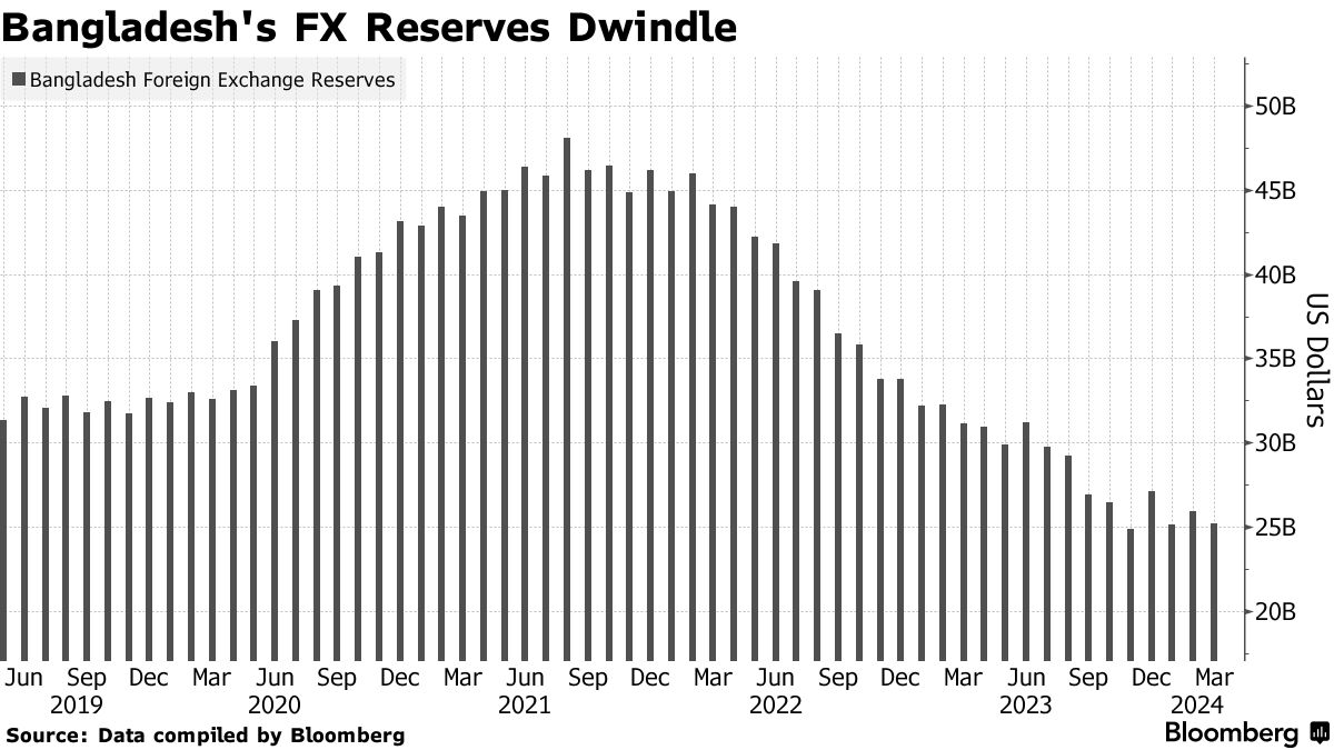 本月早些时候,孟加拉国央行引入了爬行固定汇率制度,以保持塔卡稳定并减缓外汇储备的流失。尽管如此,根据惠誉的数据,该国的外汇储备从1月份下降了15%,降至184亿美元。