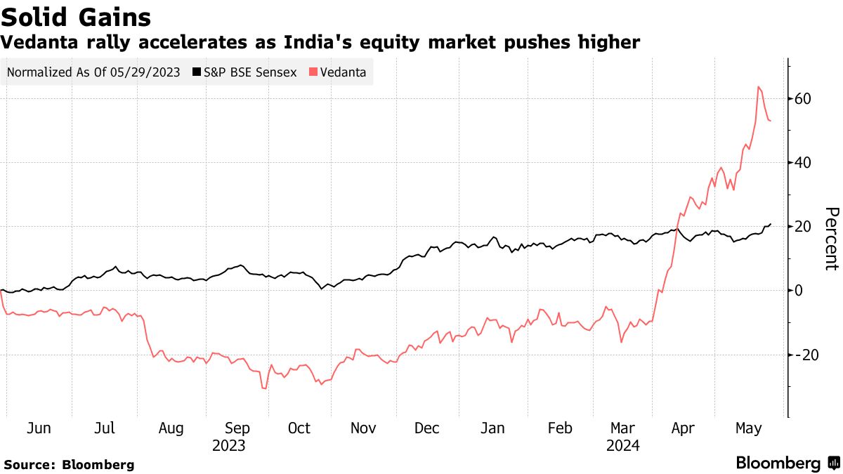 Vedanta的股价今年上涨了78%,使公司市值约为205亿美元。周二上午,股价一度上涨了2.7%,然后回落。