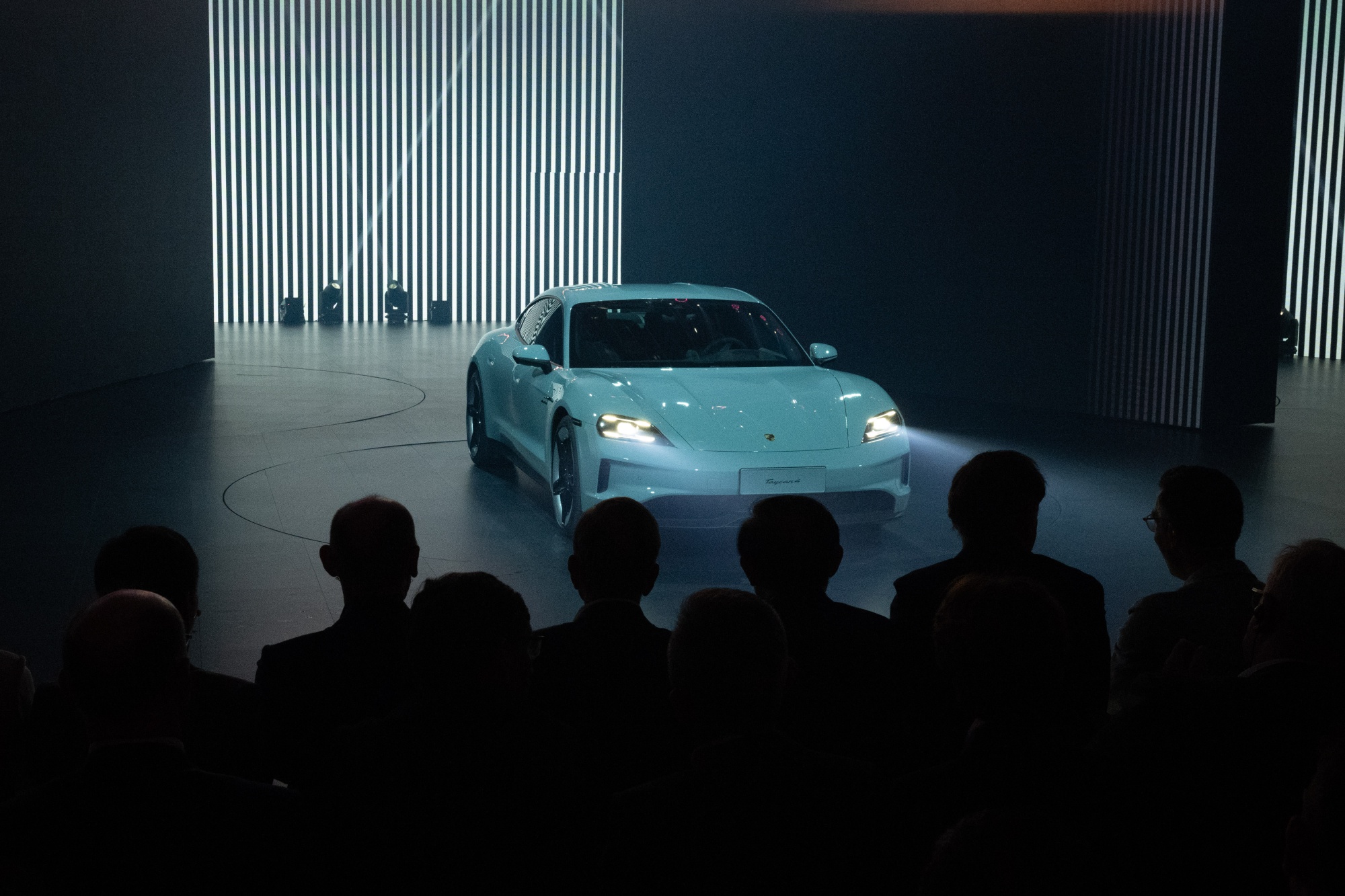 四月份在北京举行的一场活动中的保时捷Taycan。