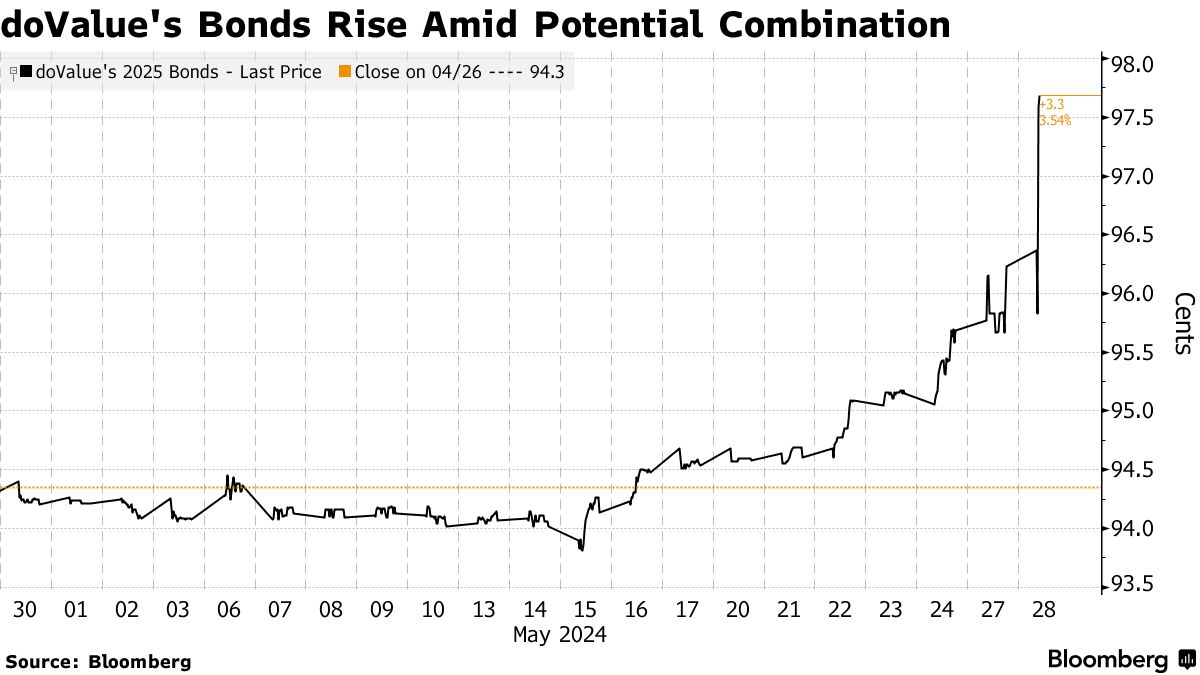 根据彭博社编制的定价数据,DoValue的股价上涨了高达4.6%,为两周来最高涨幅,到期日为2025年的债券涨了1.5美分,达到98左右。DoValue在未来两年内有5.65亿欧元的债券到期,银行信贷额度被认为是完成交易的关键。