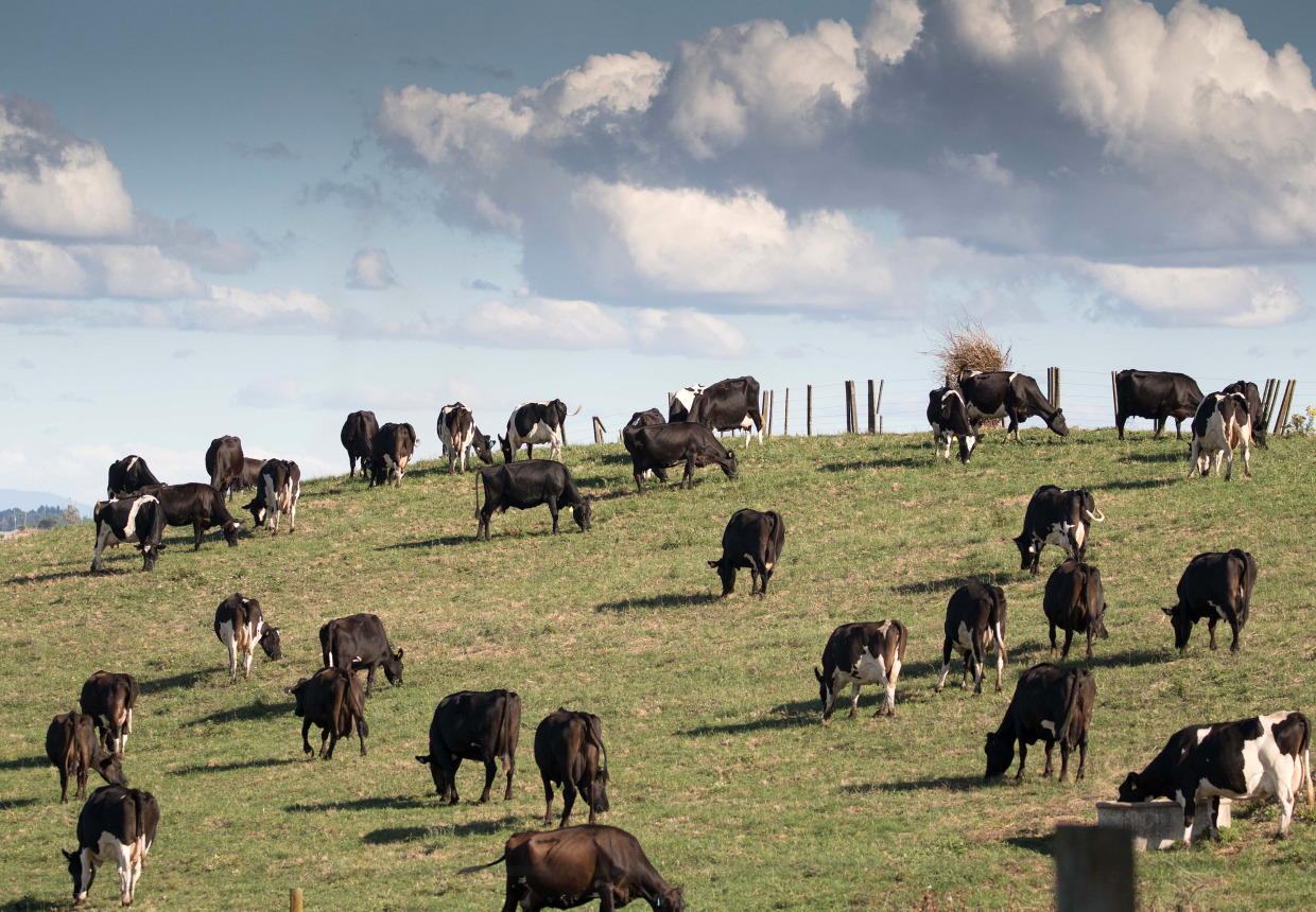新西兰汉密尔顿的农场上奶牛在吃草。摄影师:布伦登·奥哈根/林地所有者则表示,农民的批评是短视的,不利的政策变化可能会影响每年50亿新西兰元的林业出口,这也是该国GDP的重要贡献者。