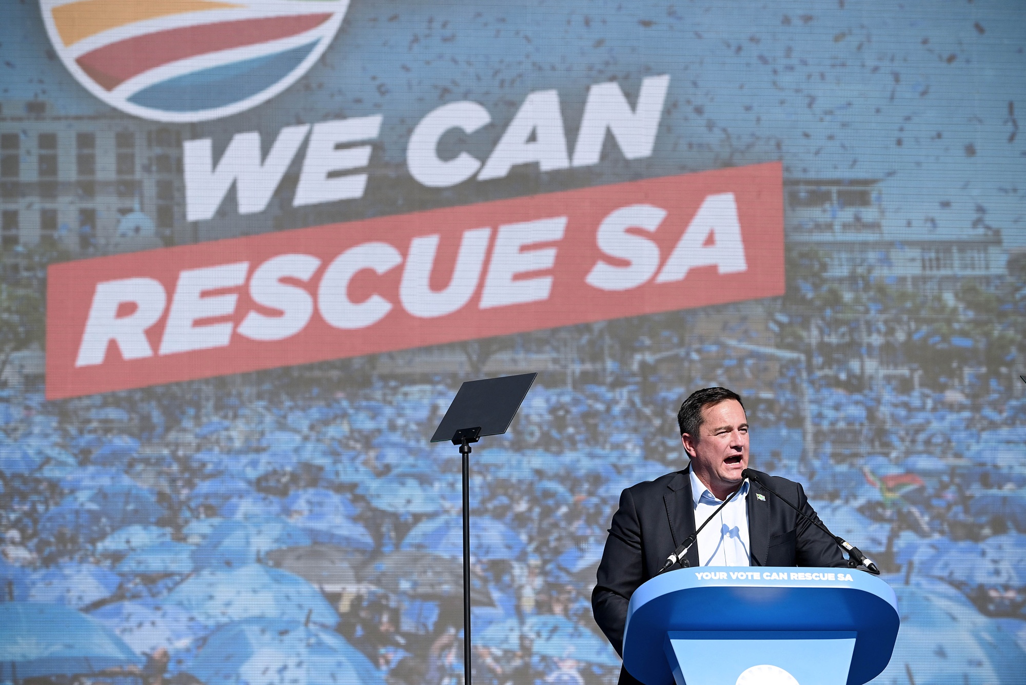 DA领袖约翰·斯蒂恩豪森在5月26日在贝农尼举行的党内闭幕集会上发表讲话。摄影师:Leon Sadiki/Bloomberg民主联盟也面临失去穆斯林社区的支持,因为该社区占西开普省人口的5.2%,由于拒绝对以色列在加沙战争中采取强硬立场,就像非国大所做的那样。