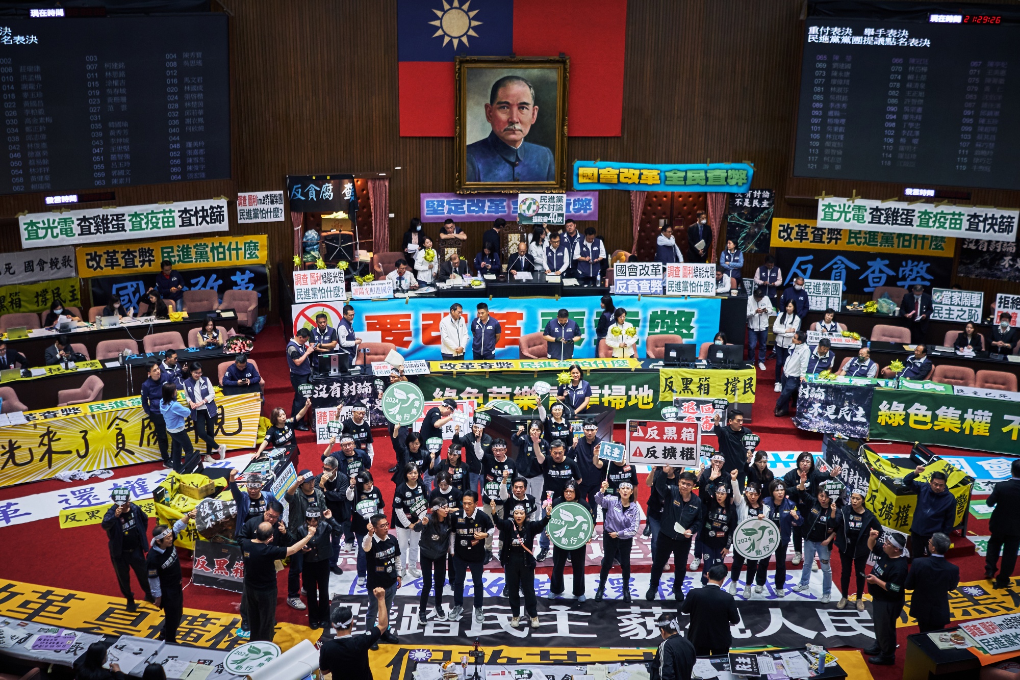 在经历了一天的喧闹辩论和赖清德领导的执政党民进党与反对派团体之间的冲突后,立法机构在周二下午通过了这项备受争议的措施,其中一名立法者的T恤被撕破。这与议会外的示威活动形成鲜明对比,尽管生动活泼,但仍然保持和平。