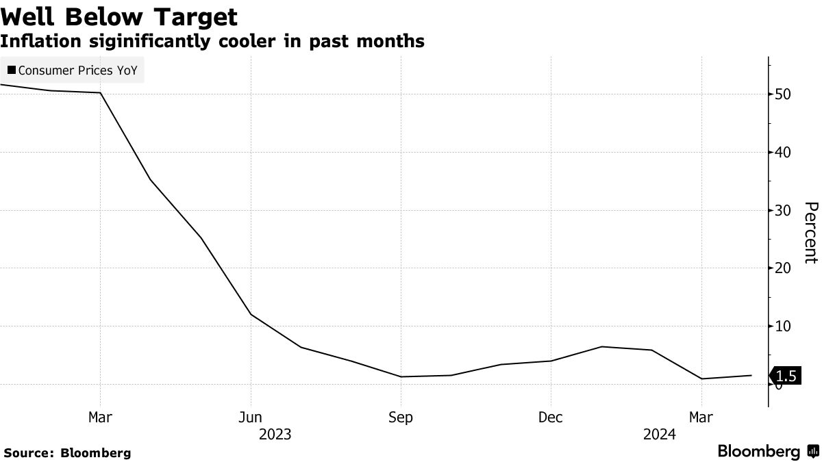 尽管四月份通胀率首次上升,但央行此前表示并未看到对其5%的物价增长目标构成威胁。