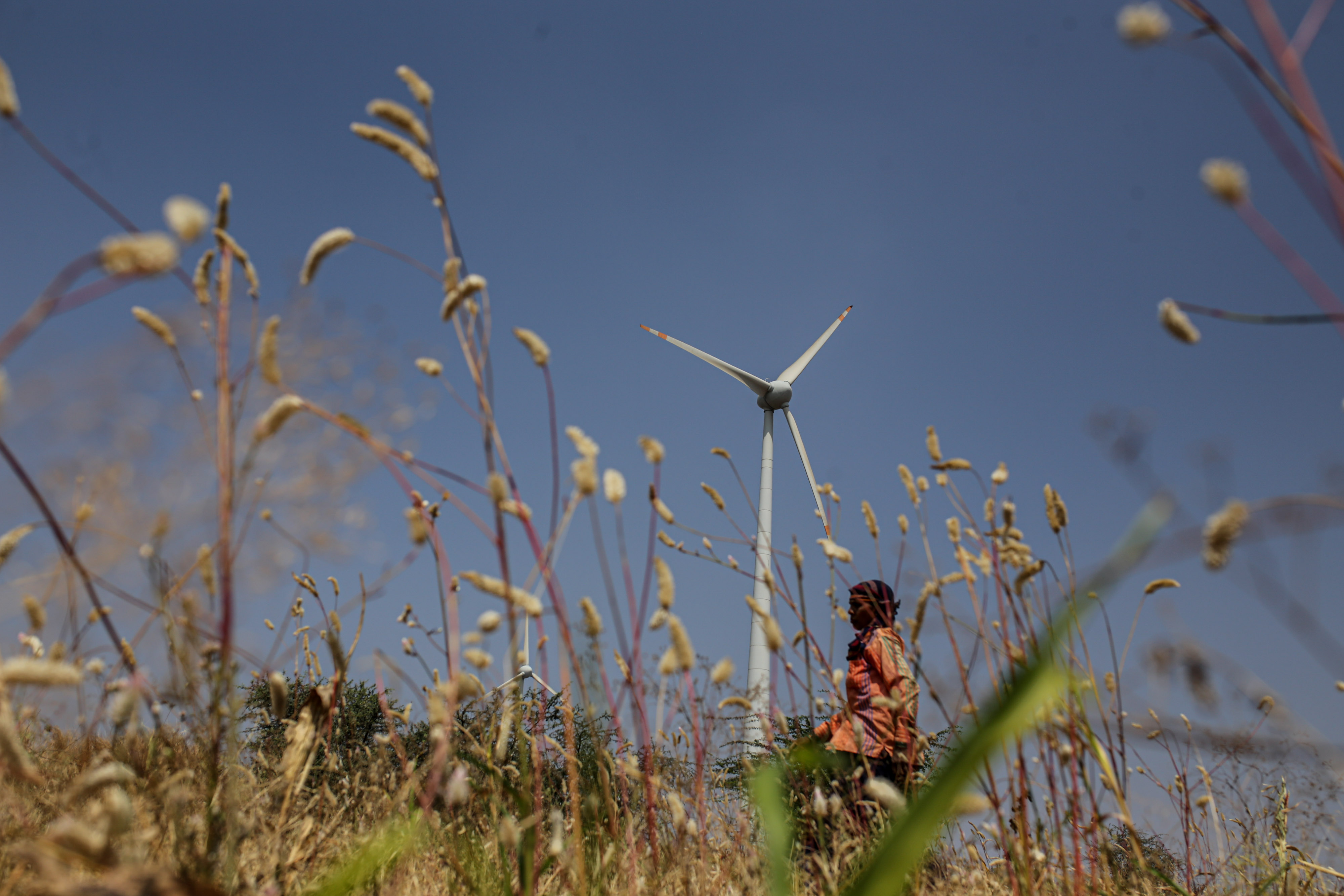 卡纳塔克邦Hubli的风力发电场内的涡轮机运行。