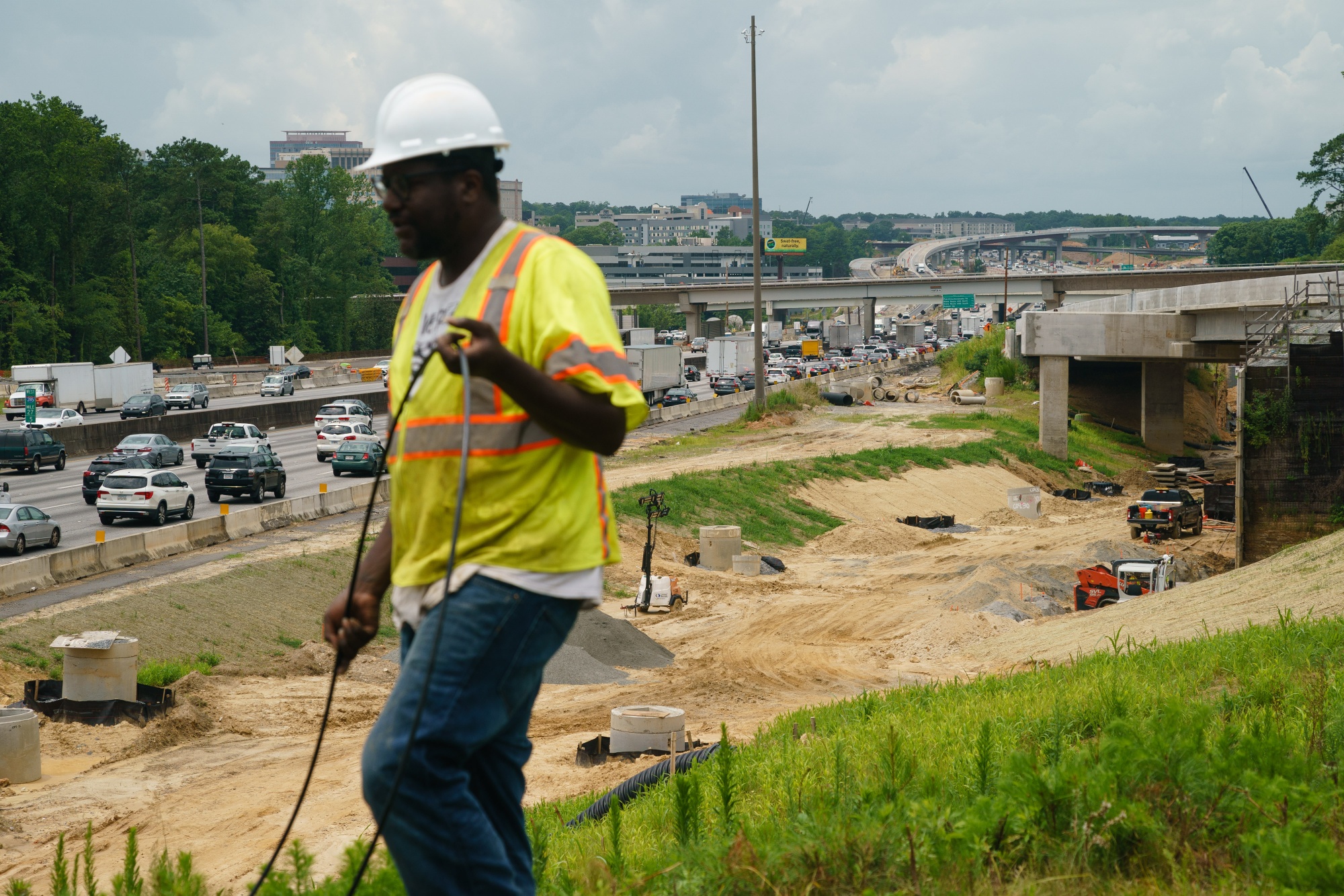 在乔治亚州桑迪斯普林斯的一条高速公路上进行的高速公路建设。
