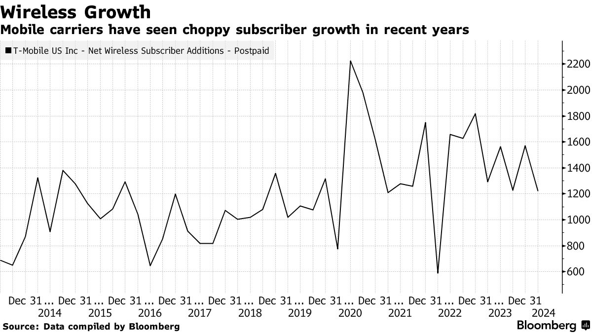 周二上午,T-Mobile的股价在纽约上涨不到1%。US Cellular上涨2.5%,母公司Telephone and Data Systems Inc.下跌约2.4%。