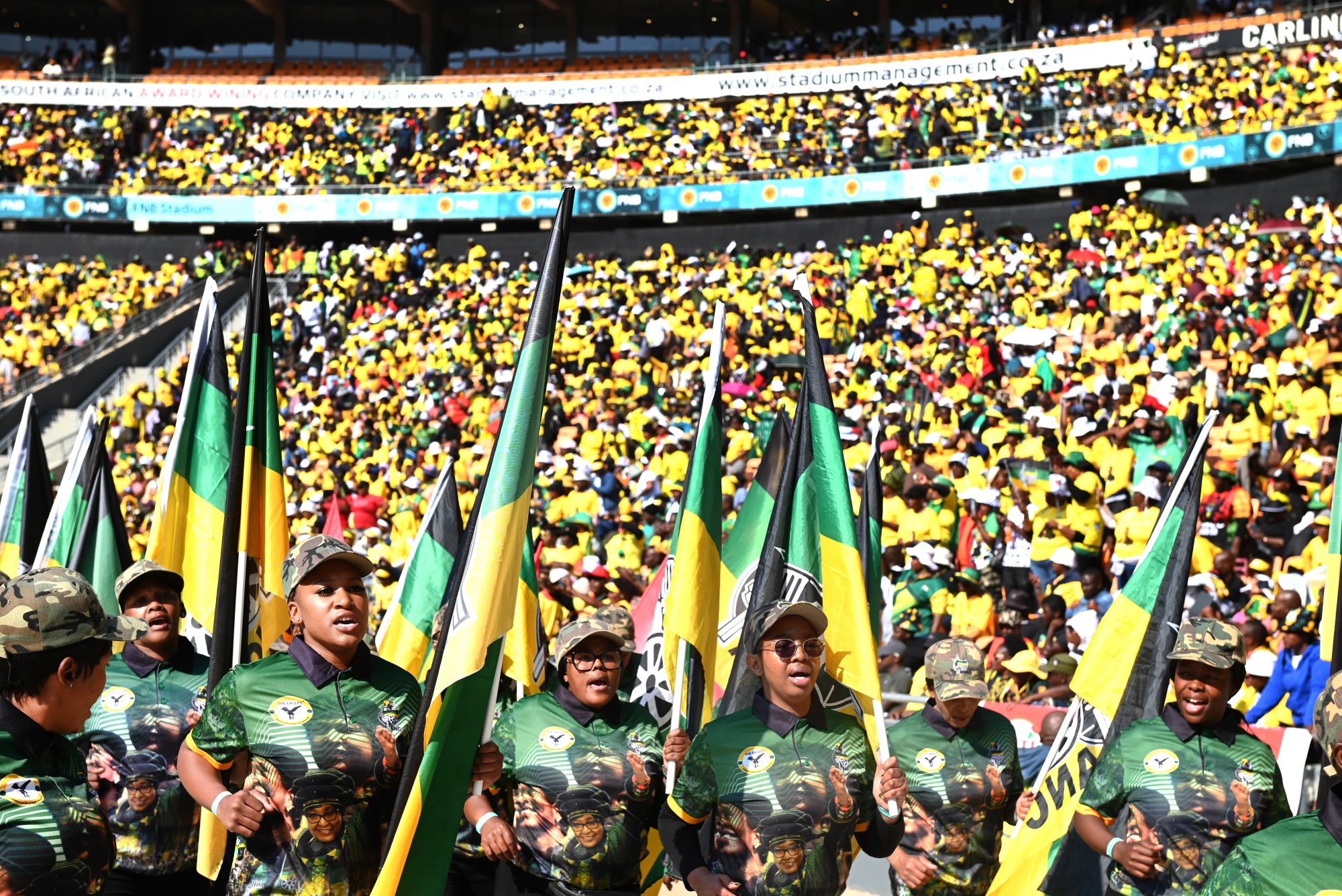 非洲国民大会支持者在南非政党的最后一次选举集会上,于5月25日在约翰内斯堡举行。