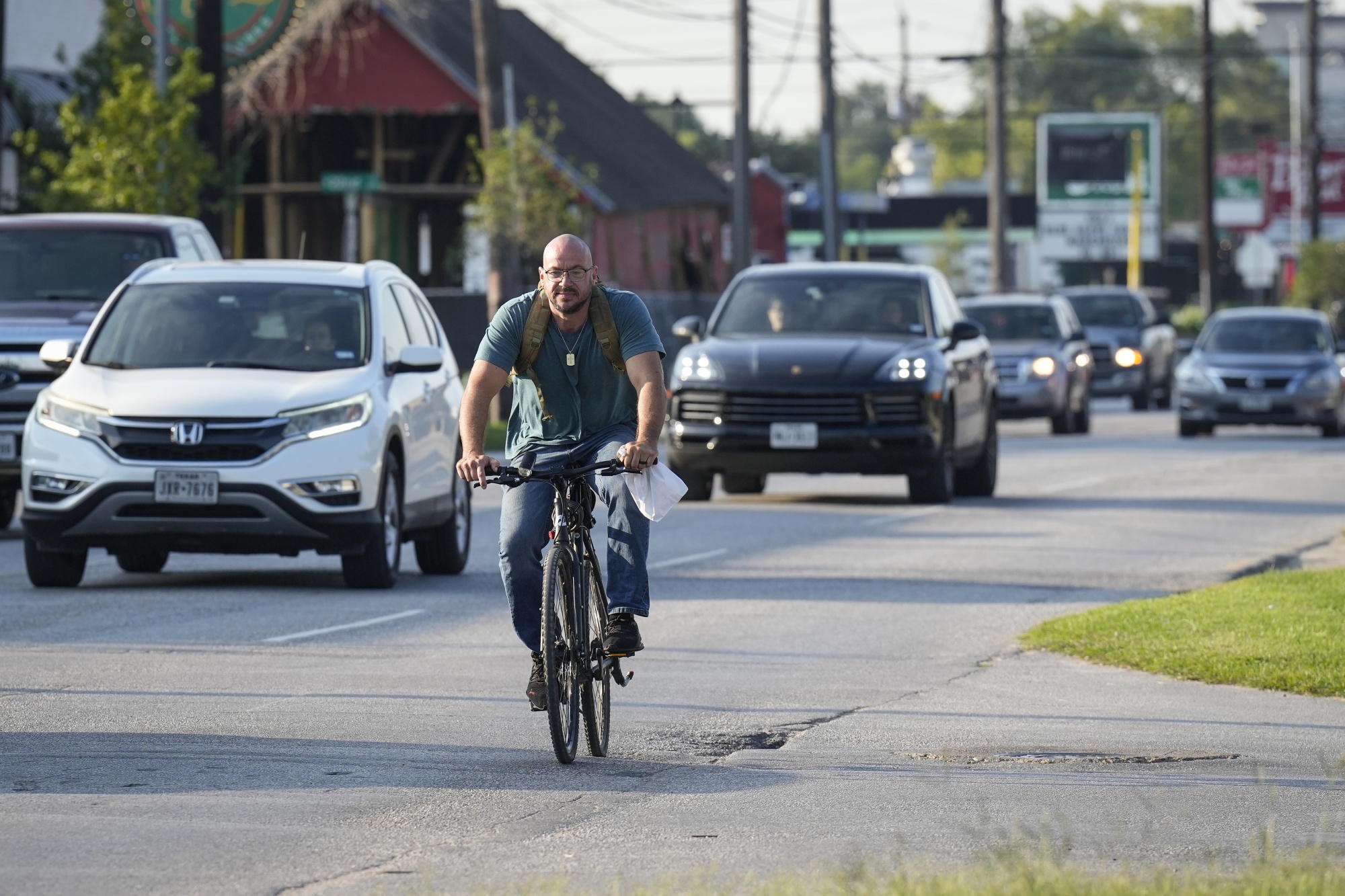 2022年,一名骑自行车的人在休斯敦骑行。摄影师:布雷特·库默/休斯敦纪事报通过盖蒂图片社该社区外也有对自行车和行人基础设施的支持。作为其区域交通计划更新的一部分,休斯敦-加尔维斯顿地区理事会调查了超过2,000名居民,发现62%的受访者希望为行人、自行车和公共交通提供更多空间,而38%的人表示希望为汽车提供更多空间。休斯敦目前在People for Bikes的城市友好度排名中位居倒数,几乎没有自行车通往主要交通枢纽或核心服务的通道。
