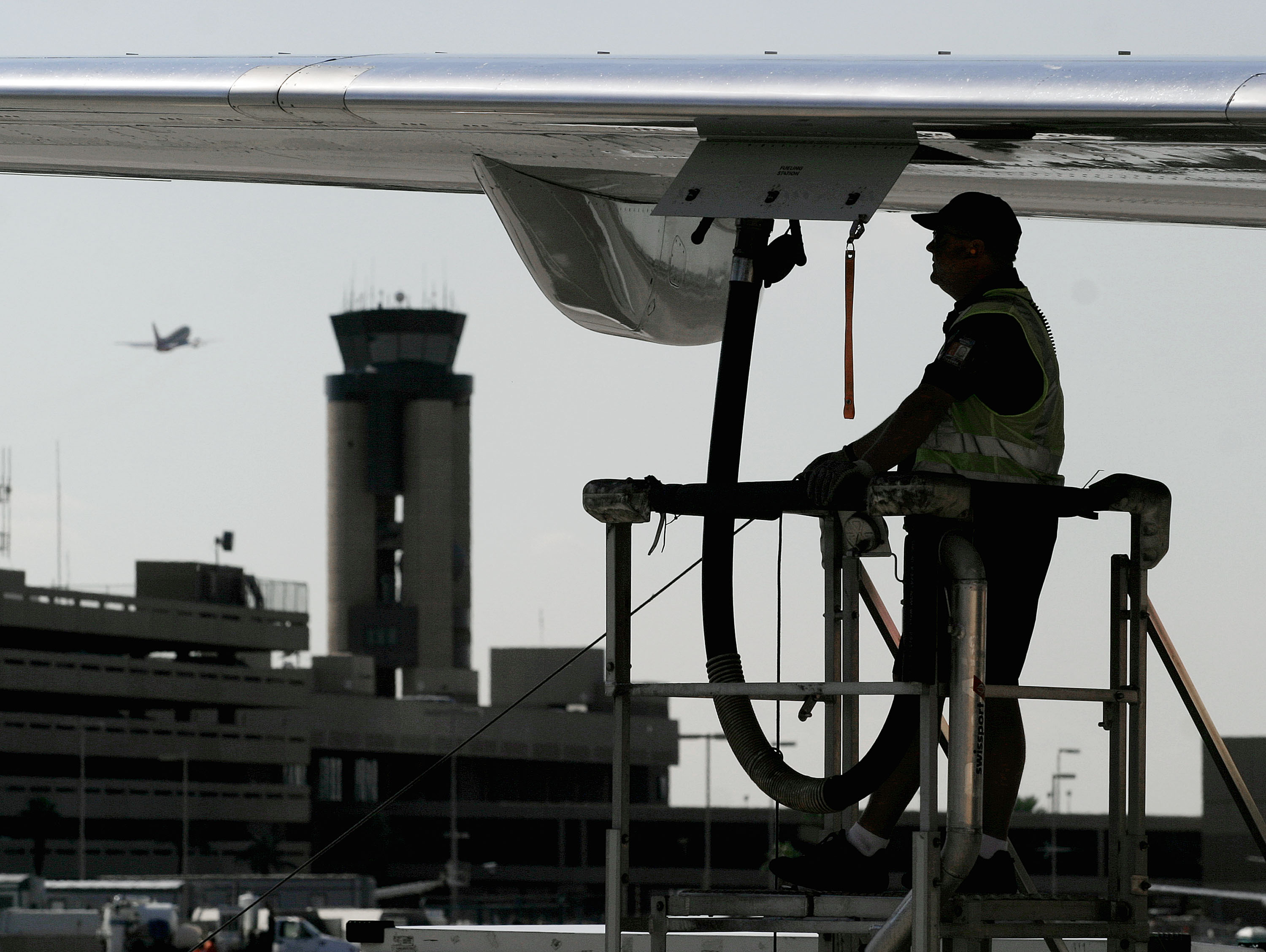 亚利桑那州凤凰城天港国际机场的地勤工人给飞机加油。摄影师:Jeff Topping/Getty Images清洁燃料先驱Fulcrum BioEnergy筹集了超过10亿美元,将家庭废物转化为对飞机和卡车排放更低的燃料,现在面临破产的危险。