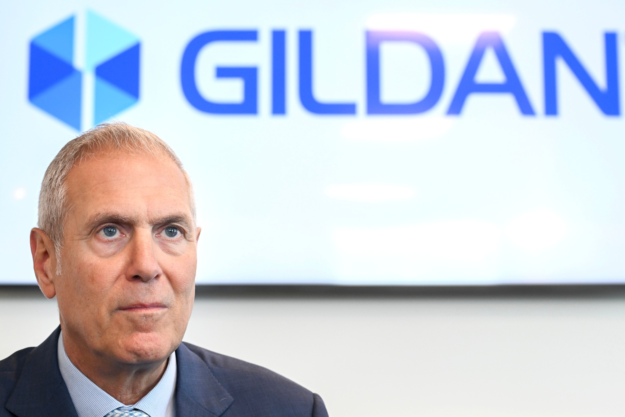 格伦·查曼迪(Glenn Chamandy),吉尔丹运动服饰公司首席执行官,在周二的蒙特利尔新闻发布会上。