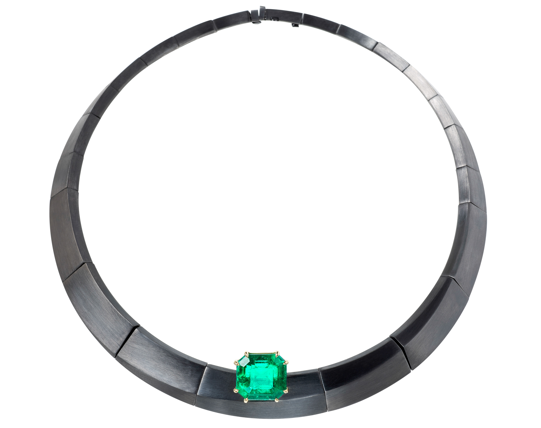 尼科斯·库利斯(Nikos Koulis)的Me系列中价值77.88万美元的项链将一颗14克拉的哥伦比亚祖母绿镶嵌在18克拉的黑色金项圈上。来源:Nikos KoulisJennifer Shanker,Muse的创始人兼首席执行官,是一家独立的纽约展厅和商店,2013年首次在拉斯维加斯的Couture展会上看到他的作品。她说:“我立刻被他的珠宝所吸引,以一种令人惊讶和情感的方式”,以至于她想代表他。