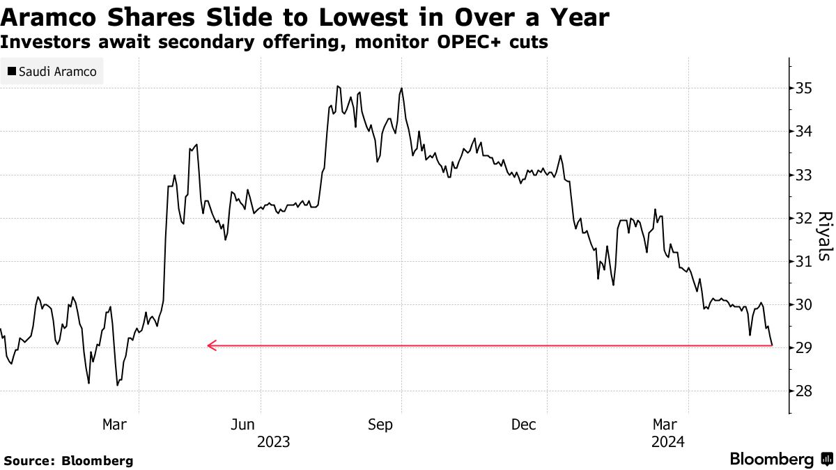 阿美股价下跌,产量限制和二次发行施压-彭博报道