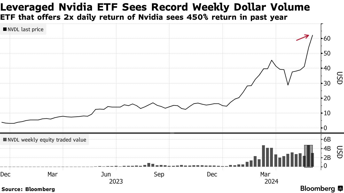 换句话说,英伟达越来越像新的特斯拉公司,因为科技牛市的零售交易者正在抓住新的ETF策略。
