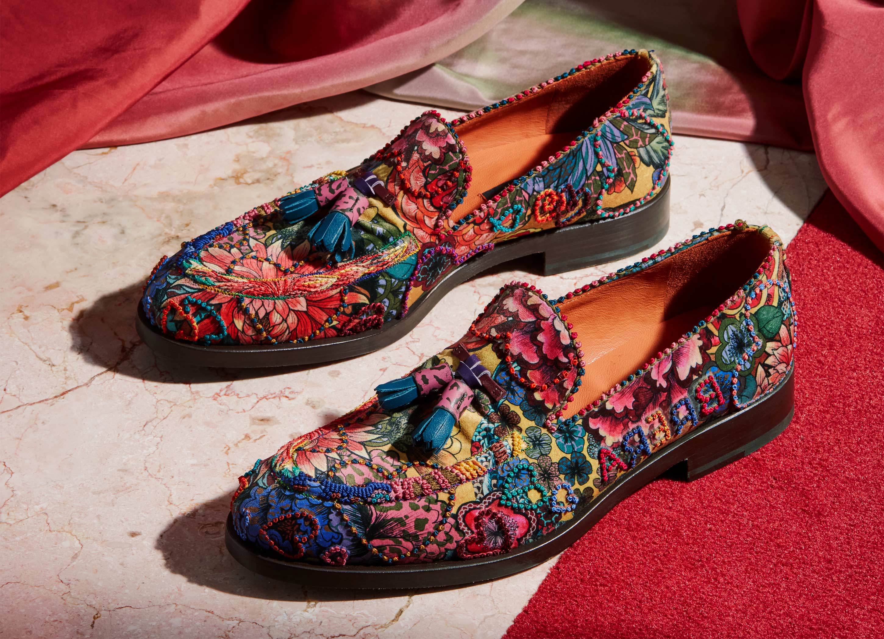 直销品牌Taft的首席设计师乔丹·汉考克表示,图案懒汉鞋的销量超过了纯色款;近60%的销售产品都采用了明亮的组合。“如果你能融入编织和有趣的镂空设计,”他说,“人们会喜欢的。”