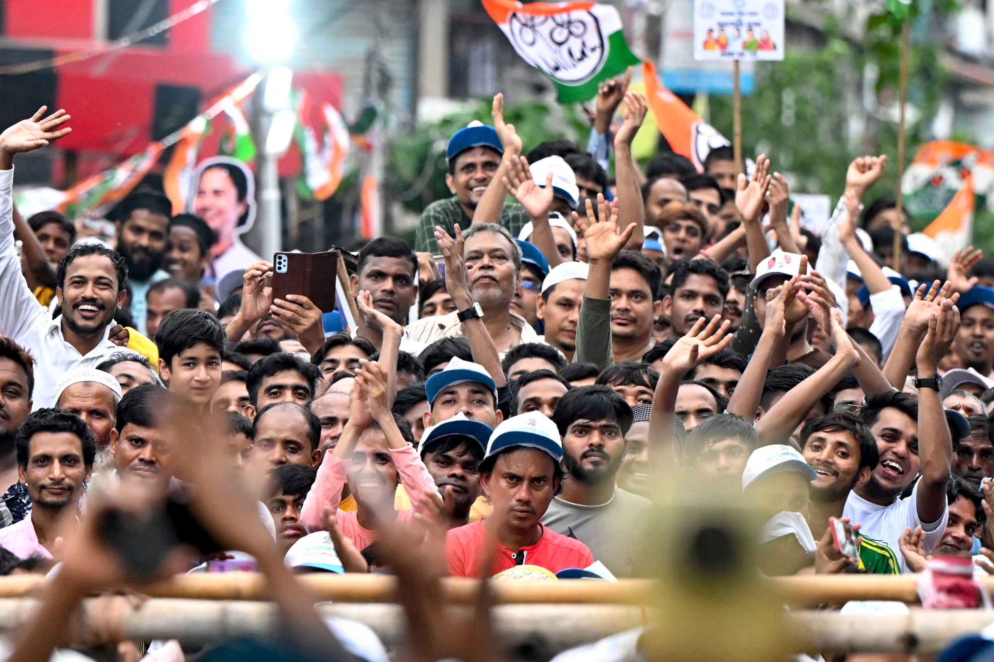 特里纳穆尔国会支持者在5月29日于加尔各答举行的选举活动中。
