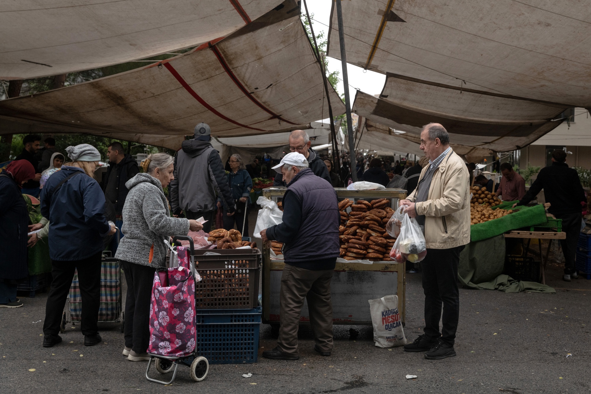 顾客在土耳其伊斯坦布尔的市场购买面包,时间是5月10日。