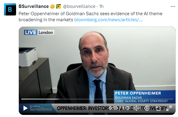 “我们现在处于债券收益率的一个水平,从这里开始上升的收益率将真正对所有资产类别产生压力,”高盛的彼得·奥本海默今天在监控上说。