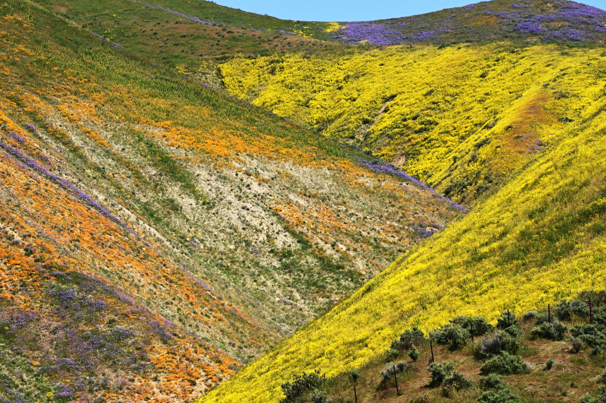 在过去的两年里,加利福尼亚在10月至4月的雨季期间接收了大量的雪和雨水,结束了多年的干旱,使植物得以茁壮成长。去年,所谓的本地花卉的绚丽盛开覆盖了整个风景。虽然2024年的颜色没有那么强烈,但由于入侵物种开始赶上,生长更加旺盛。