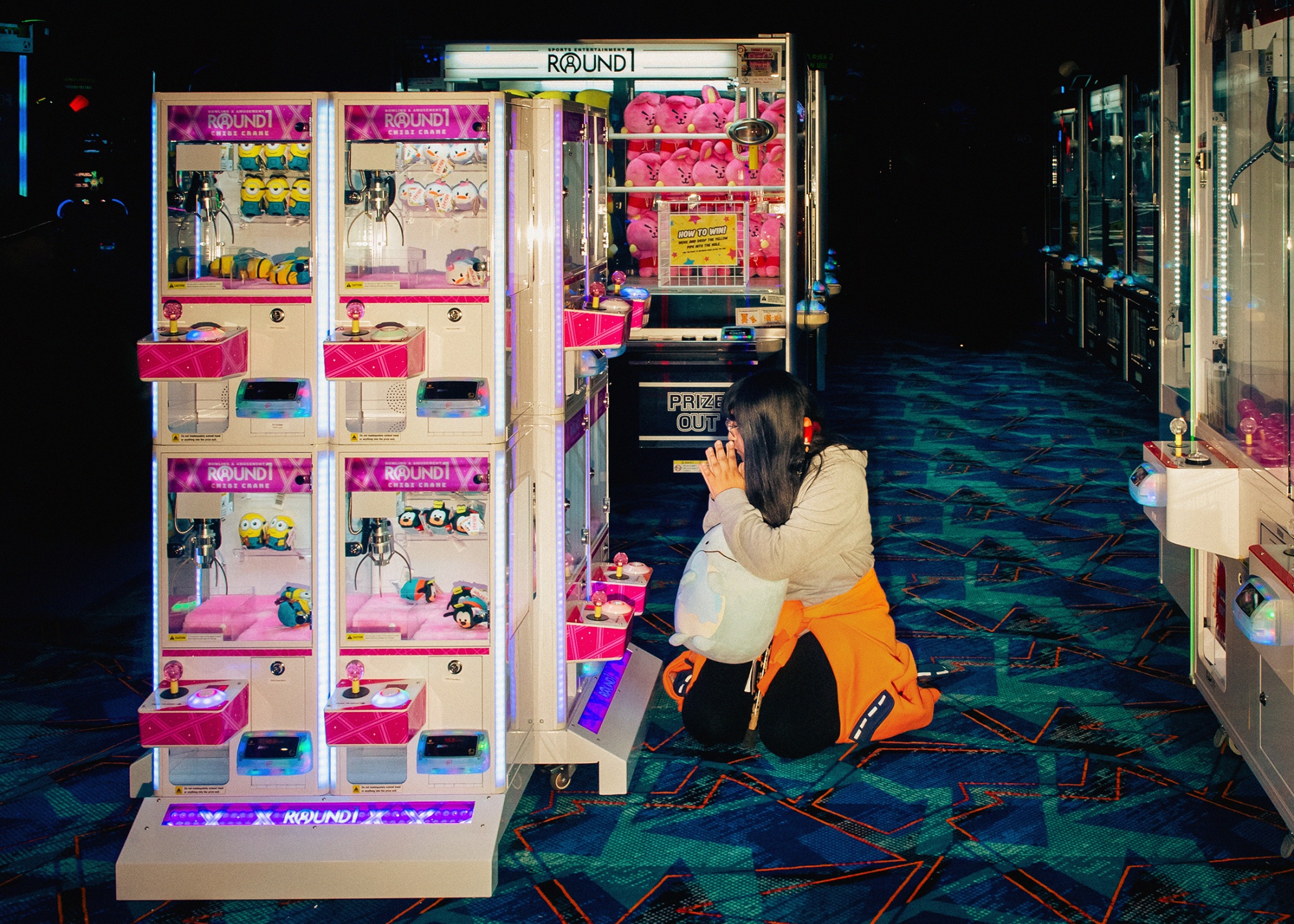 在伯班克玩 舞力全开。摄影师:Maggie Shannon,彭博商业周刊虽然游戏玩家可能是Round One最热情的顾客,但该公司最赚钱的项目是抓娃娃机,顾客每次花费约2美元尝试抓取与热门动漫IP相关的玩具。该公司越来越多地将原本用于视频游戏的空间改为抓娃娃机,这一举措被称为“超级起重机项目”。Round One的成功并不一定意味着对其所在购物中心的成功。位于普安特山的Round One店是全国营业额最高的店铺,尽管该购物中心的入住率仅为60%左右。Sugino表示,身处陷入困境的购物中心并不一定是问题。“如果我们继续努力改善店铺并提高品牌知名度,我认为我们并不需要购物中心挤满人群,”他说。