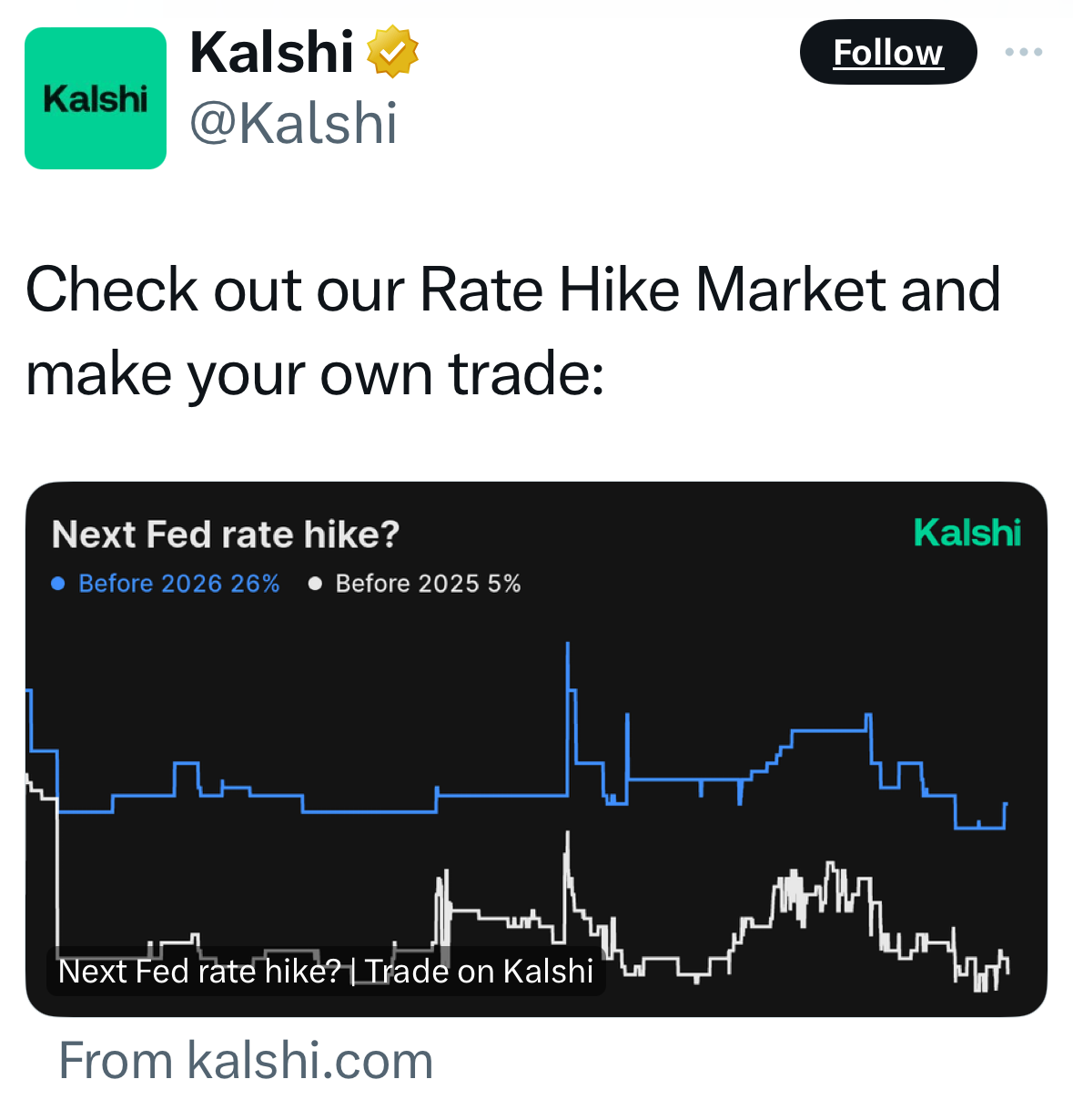 来源:@Kalshi与加密货币交易所不同,Kalshi的业务并不像加密货币的冬季或牛市那样受影响,创始人兼首席执行官Tarek Mansour表示。“我们的市场对事情是好是坏不太敏感,更多地取决于市场上存在多少分歧,”他在一次采访中说。