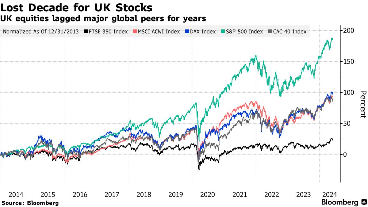 英国股票接近创纪录高位,债券波动已经消失,对英镑疲软的对冲达到了七年来的最低点。这标志着投资者重新考虑了对该国资产的处罚,这些处罚是在2016年决定脱欧后以及2022年利兹·特拉斯灾难性的首相任期之后施加的。