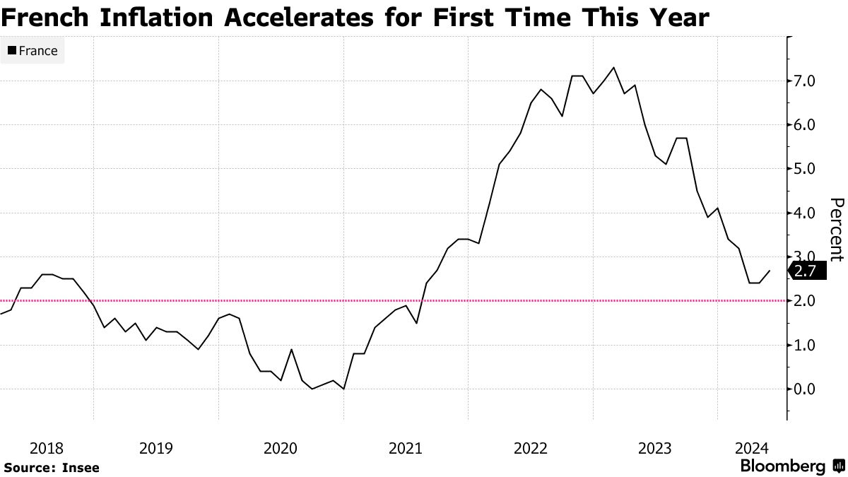 法国通胀加速,欧洲央行准备降息 - 彭博社