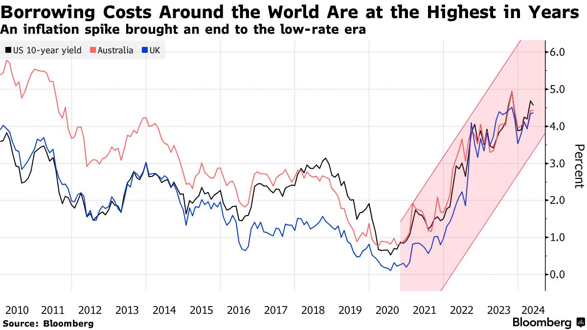 创纪录的低借贷成本推动了世界上最大的房地产繁荣之一。现在,持续较高的成本威胁着漫长的宿醉。