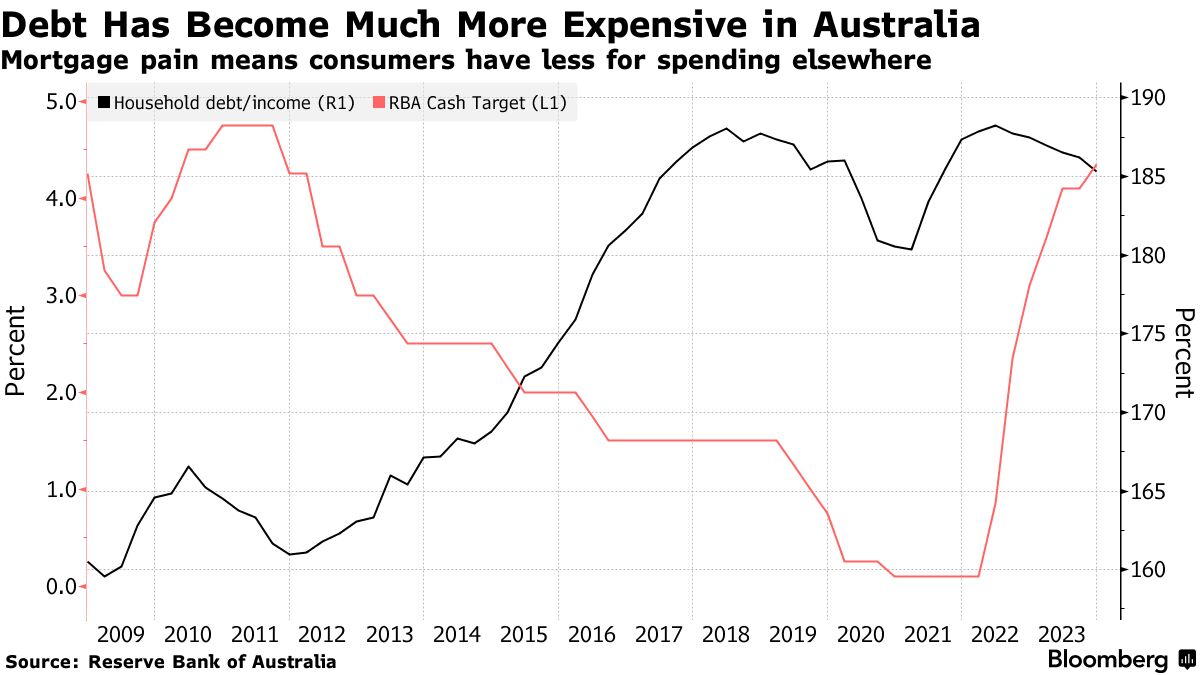 随着家庭债务占收入的185%,澳大利亚储备银行的每次加息都会加剧房地产业主的痛苦,让他们在外就餐和休闲活动上花费更少。租金中位数也创下历史新高,伤害了那些错过房地产繁荣的人。