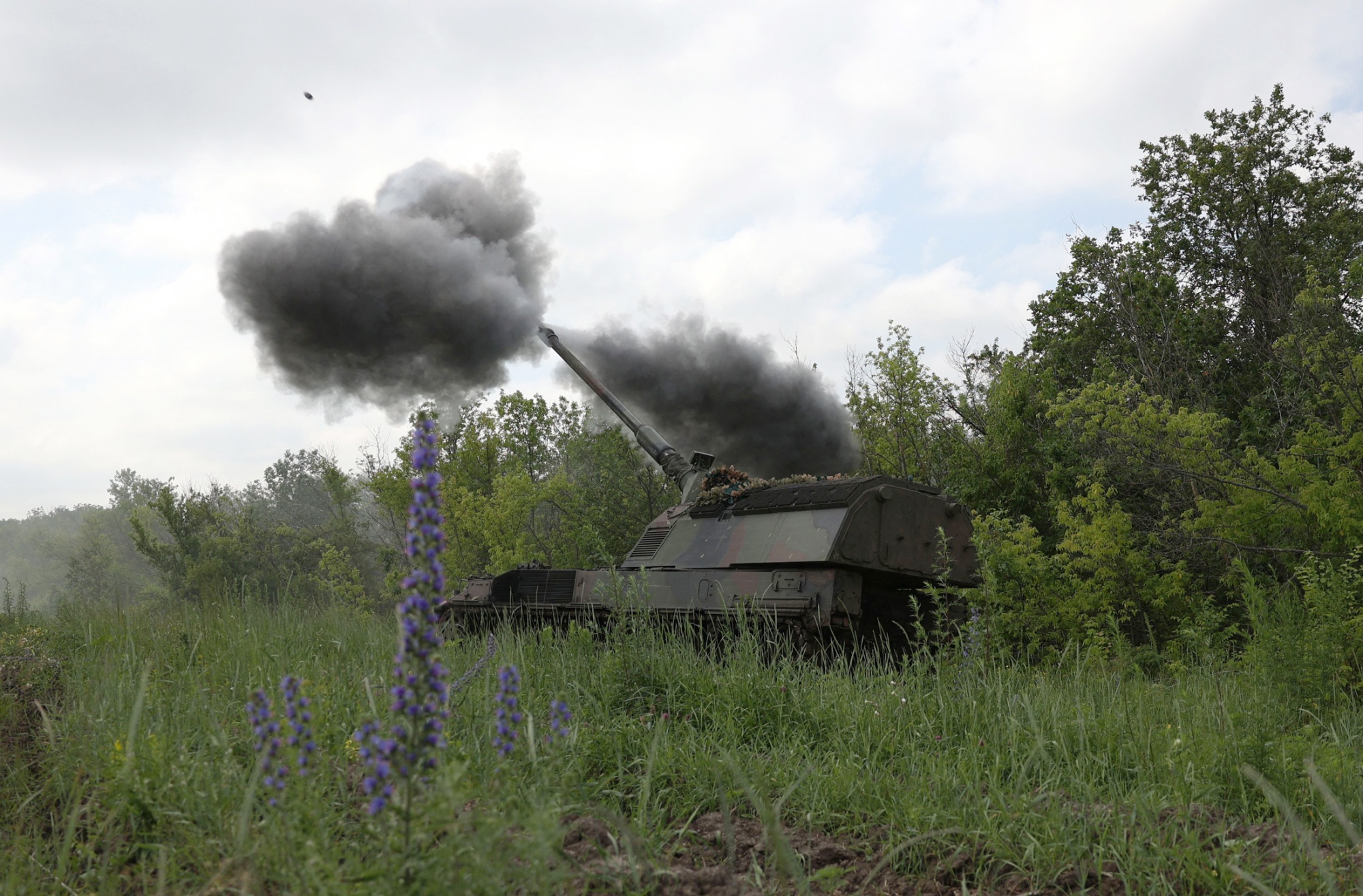 乌克兰炮兵部队向俄罗斯阵地发射PzH 2000榴弹炮。摄影师:Anatolii Stepanov/AFP/Getty Images