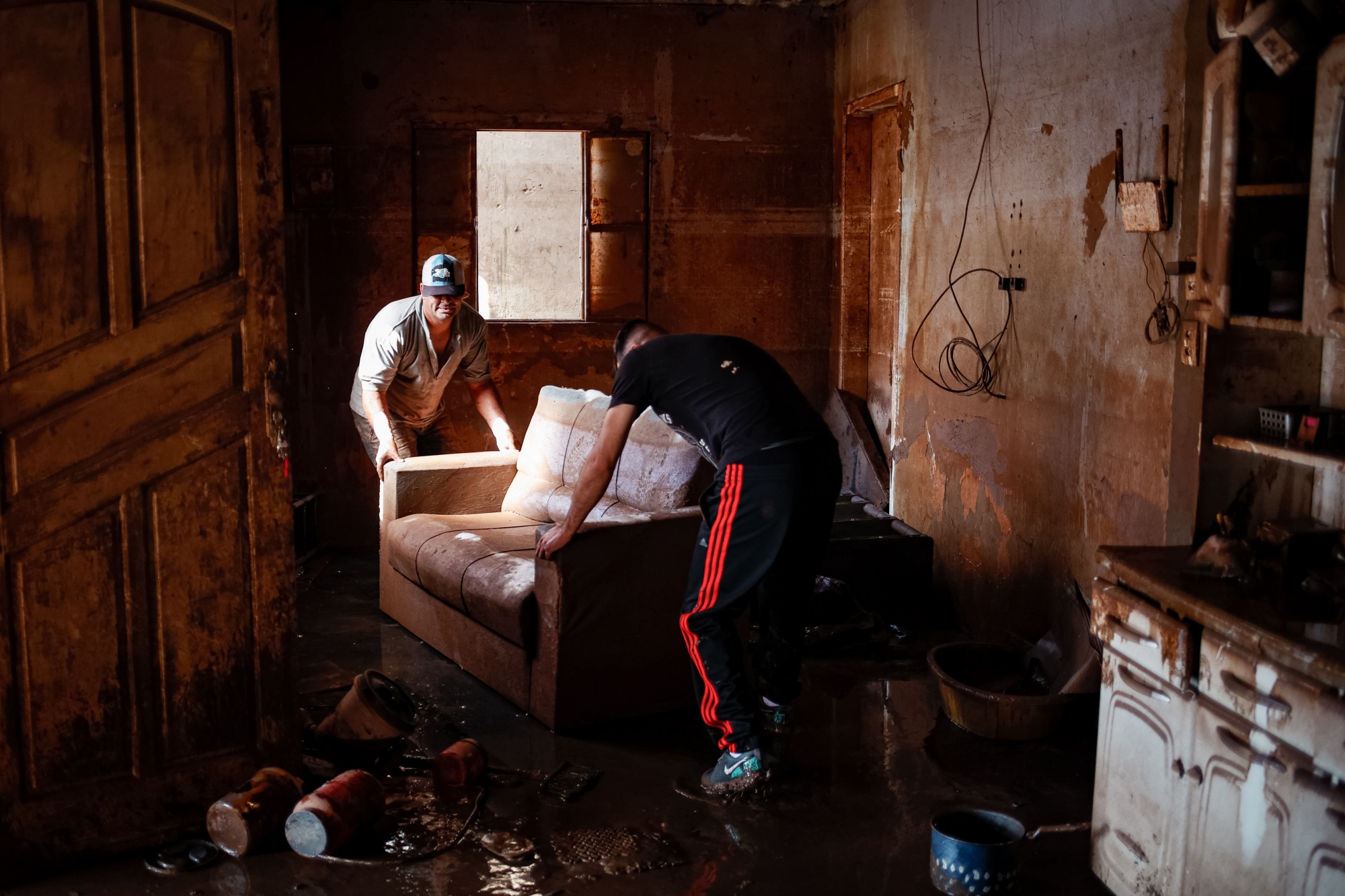 5月22日,居民们正在从埃尔多拉多杜苏尔的一处住宅中搬出受损家具。摄影师:图安·费尔南德斯/彭博社在洪水发生之前,利玛和丈夫刚刚购买了新家具——并非全部付清。