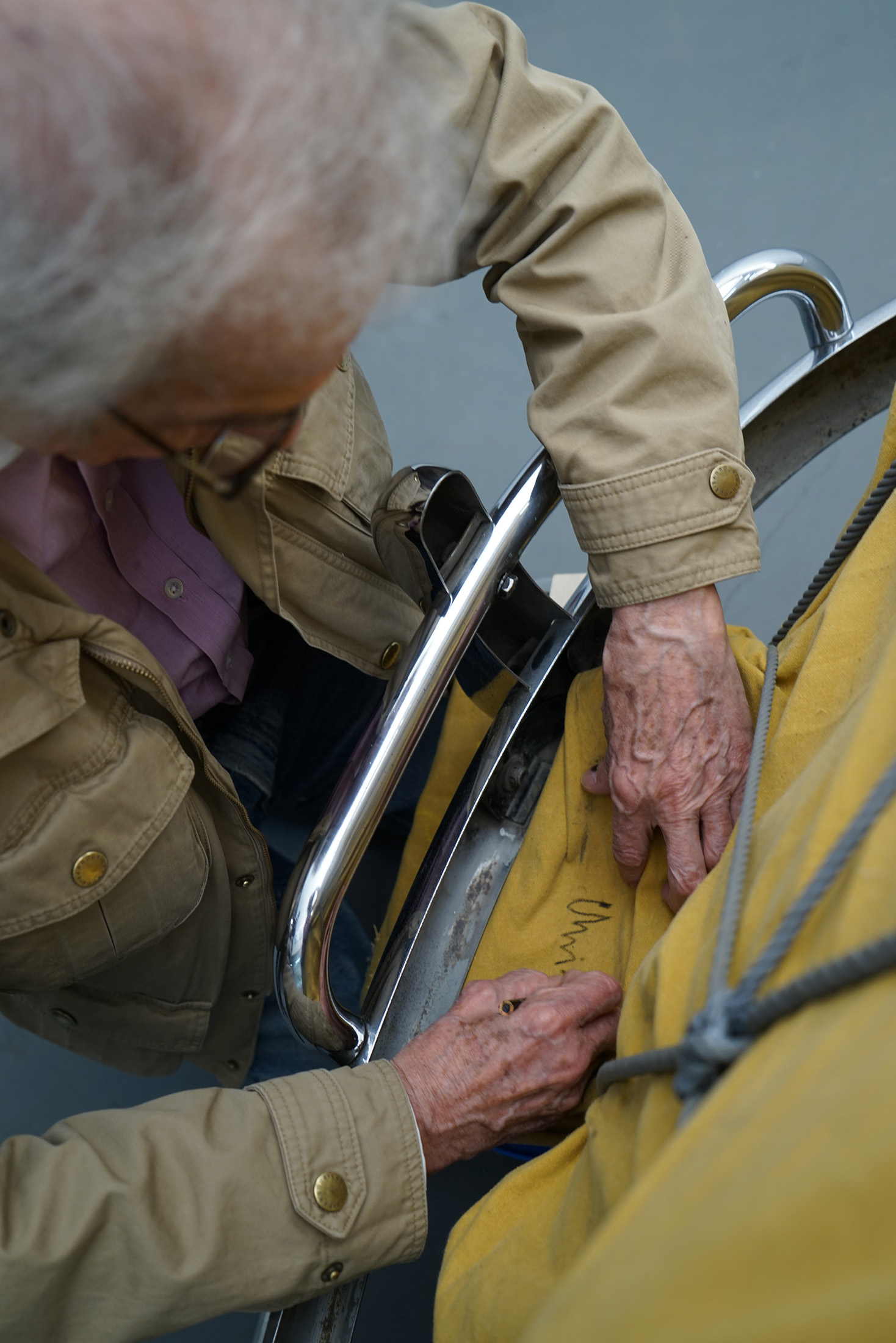完成的车子安装在脚轮上,以便轻松安装。摄影师:沃尔夫冈·沃尔兹,© 克里斯托和让·克洛德基金会,由克里斯托和让·克洛德基金会和高古轩提供然后是给车子包裹。Yavachev说:“对于克里斯托来说,一切都关乎美学,他非常注重使用这种芥末色的蜡帆布。”同样重要的是要有一种非常特定颜色的“老鼠灰”色绳索。