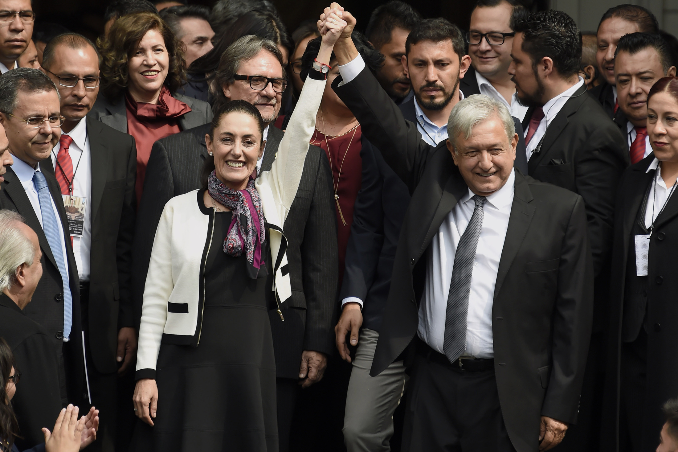 2018年墨西哥城市长宣誓就职后,AMLO祝贺谢因鲍姆。摄影师:阿尔弗雷多·埃斯特雷拉/法新社/盖蒂图片社自3月份竞选活动开始以来,她一直谨慎地不泄露可能表明与现任不同的任何提议。当被问及她的履历时,她会列举统计数据,在4月份向商界人士做演讲时夸耀说,按人均计算,墨西哥城的谋杀率低于洛杉矶或华盛顿特区。