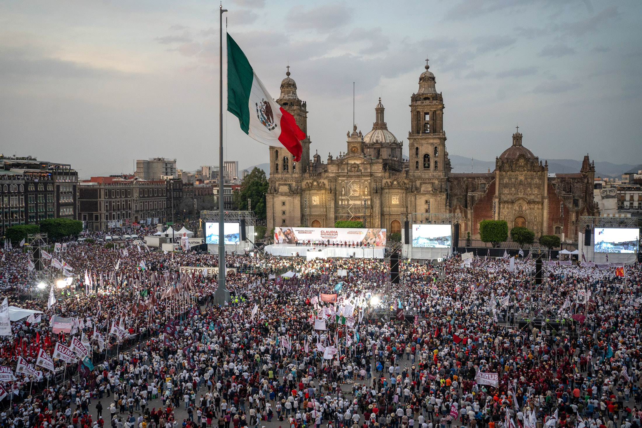 执政党Morena的候选人正在争取远近的选票,她正在竞选成为6月2日墨西哥首位女总统。