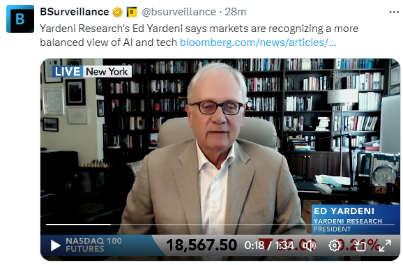 “市场开始认识到对技术和整体经济发展的看法更加平衡是一个健康的发展,”Yardeni说。“市场认识到人工智能领域不会一帆风顺。”