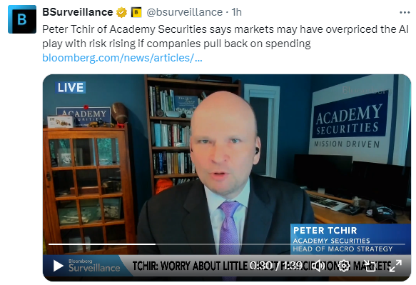 Tchir说,在一个被定价完美的环境中,任何挫折都有可能引发抛售潮。随着公司意识到充分实现人工智能的长路,它们很可能会减缓支出速度。“这可能是大幅下跌的原因之一——整个人工智能和相关领域的热度稍微降温,”他说。