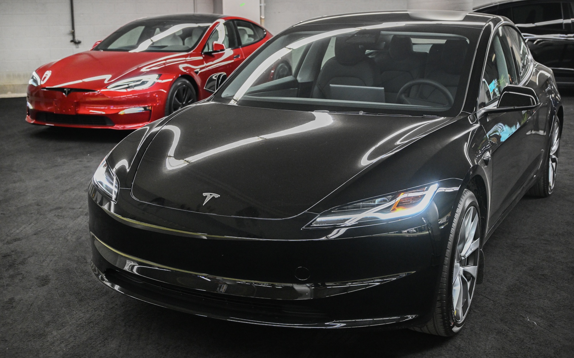 2024年蒙特利尔电动汽车展上的特斯拉Model 3。摄影师:格雷厄姆·休斯/彭博社