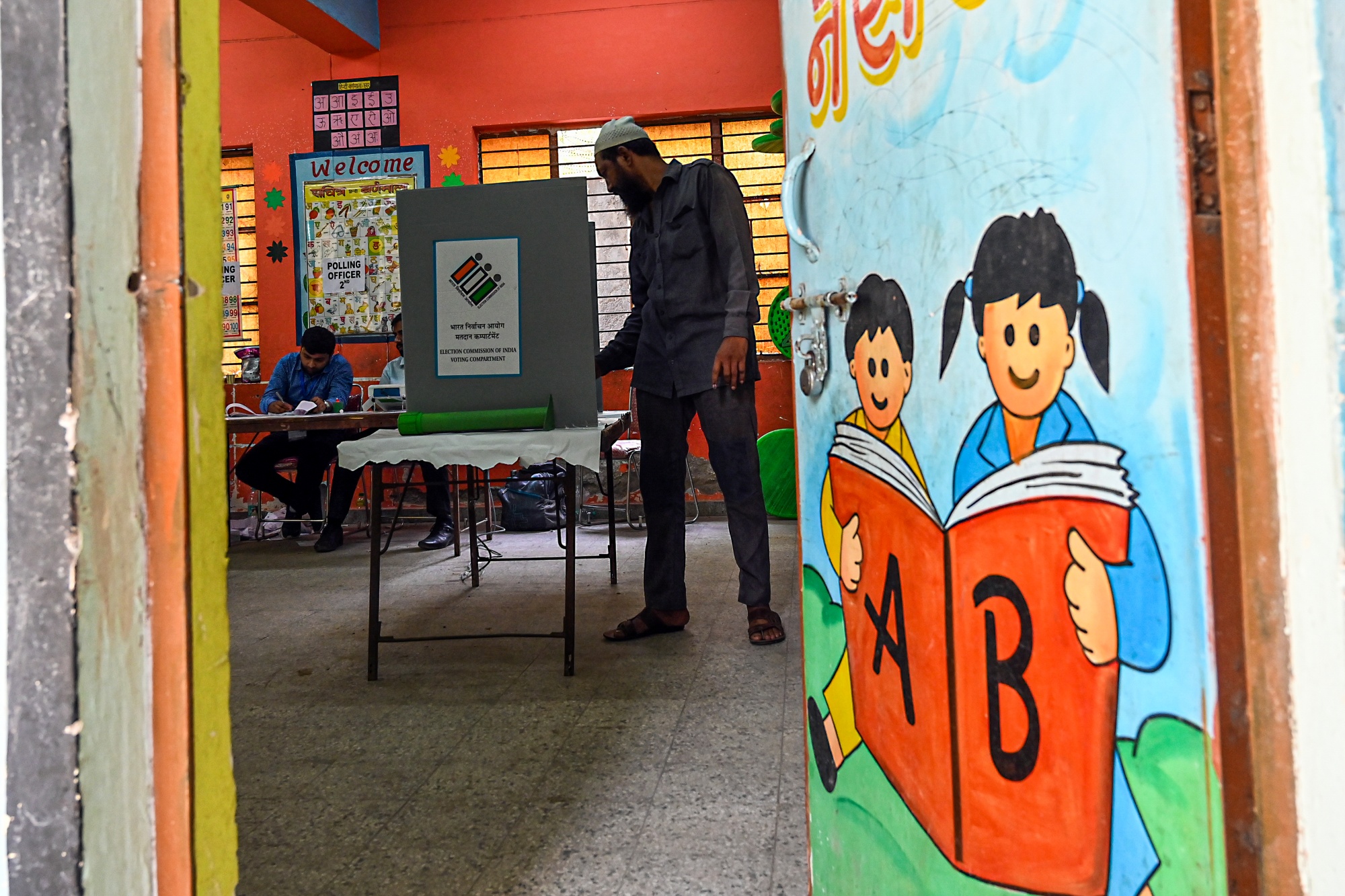 一名选民在5月25日德里全国选举第六阶段投票站投票。摄影师:Prakash Singh/Bloomberg这次选举是莫迪领导的印度人民党和一个被视为难以发起强有力进攻的反对派联盟之间日益激烈的竞争。