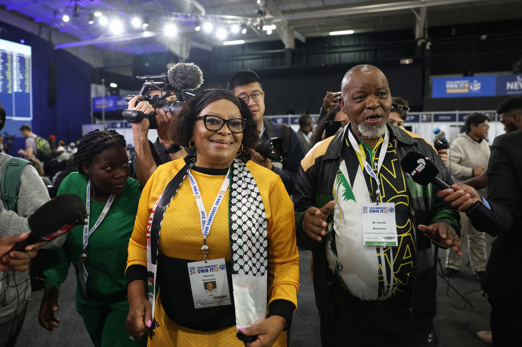 非洲人国民大会副秘书长诺姆武拉·莫科尼亚内(左)与主席格韦德·曼塔什在兰德中心独立选举委员会全国成果运营中心,摄于6月1日。摄影师:菲尔·马加科/法新社/盖蒂图片社“非洲人国民大会执政时间太长,变得太自满,”政治分析师、民主工程基金会创始人威廉·古梅德在接受彭博电视采访时表示。“我认为自1994年以来,我们将首次看到某种形式的问责制,某种形式的紧迫性来处理所有这些结构性问题。”