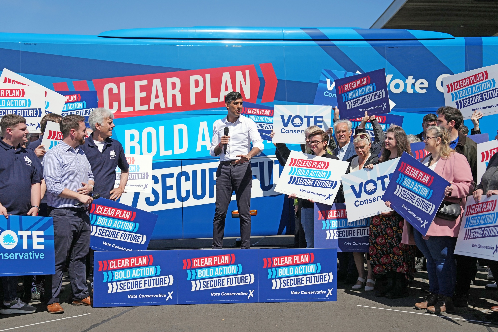 里什·苏纳克站在英国雷德卡尔的保守党竞选巴士前,时间是6月1日。摄影师:卡尔·科特/盖蒂图片社“过去几年很艰难,但我一直支持你们,”苏纳克说,提到了疫情期间的休假计划和对能源账单的支持。