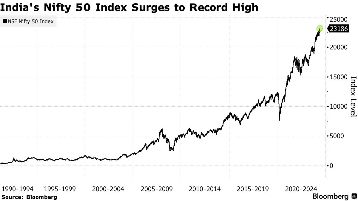 “印度风险资产处于一个由温和通胀和强劲经济增长定义的理想宏观环境中,”Clocktower Group LP首席策略师马尔科·帕皮奇表示。他说,国内资本支出的复苏、全球资金从中国转移以及本地投资者之间的“异常狂热”是推动印度股市涨势的驱动因素之一。
